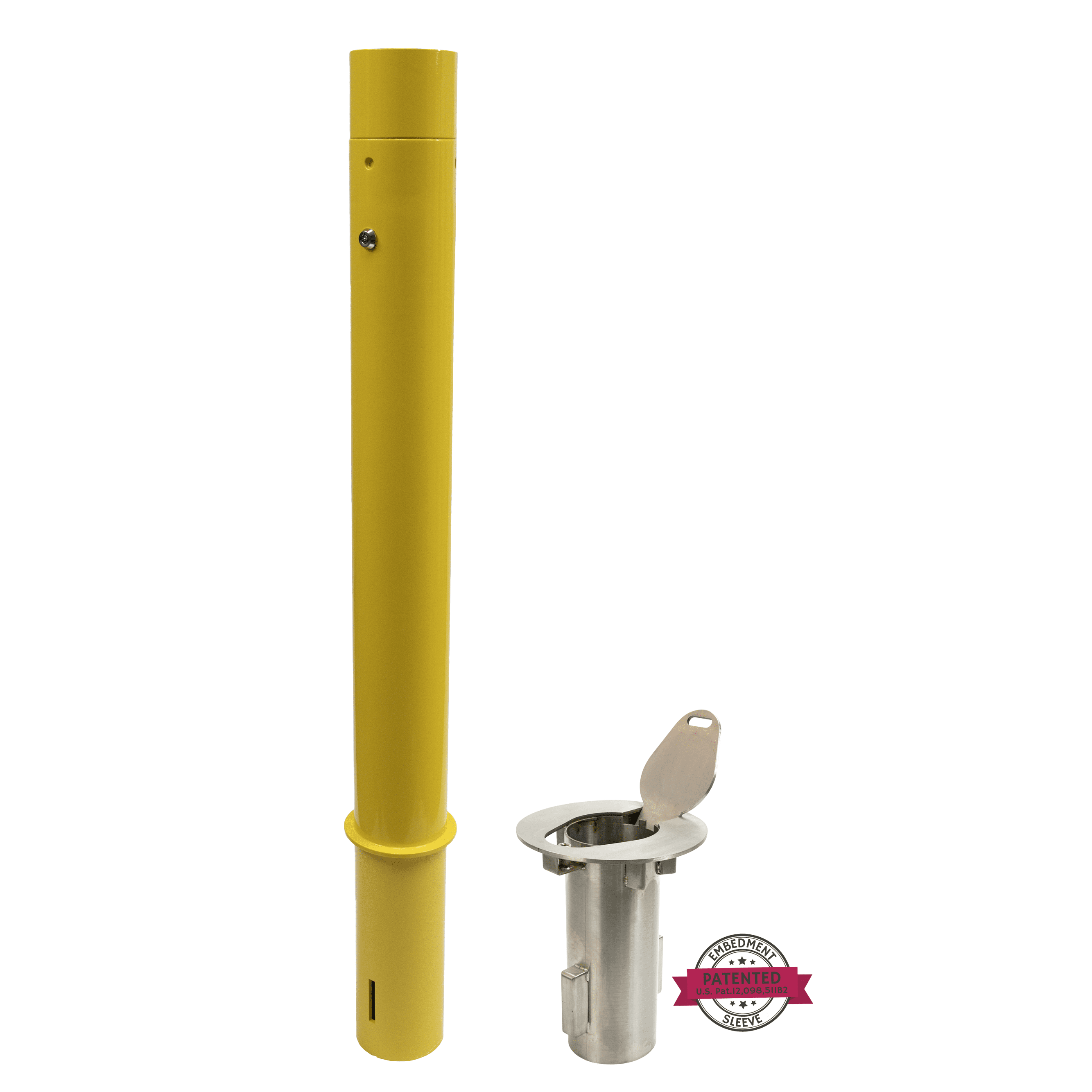 1-800-BOLLARDS Internal Locking Removable Bollards are the most versatile bollards on the market today. The locking mechanism engages below grade, inside the embedment sleeve. Internal Locking Removable Bollards are nearly impossible to remove without the key which is placed waist high on the bollard for easy access. When the bollard is removed, the locking lid covers the embedment sleeve for a smooth, hazard-free transition from security to access. The heavy-duty lid is robust enough to handle most traffic areas when the bollards are not in use. Our patented embedment sleeve enables customers to easily replace the lid if it becomes damaged. Many times, these bollards are mixed in with our fixed bollards to create a secure perimeter with the added functionality of allowing access.
