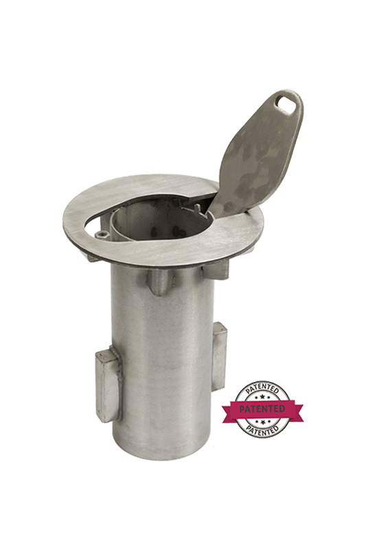 1-800-BOLLARDS line of Padlock Removable Carbon Steel Bollards is used for a variety of applications such as Farmers Markets, access roads, rails and trails, etc. Our patented locking embedment sleeve lid latches onto the Padlock Removable Bollard when it is placed into the embedment sleeve and a padlock secures the bollard in place. When the bollard is removed, the locking lid covers the embedment sleeve for a smooth, hazard-free transition from security to access. The heavy-duty lid is robust enough to handle most traffic areas when the bollards are not in use. Our patented embedment sleeve enables customers to easily replace the lid if it becomes damaged. Many cities and mixed-used centers install multiple embedment sleeves throughout an area and insert Padlock Removable Bollards as needed, allowing for a variety of uses and combinations.